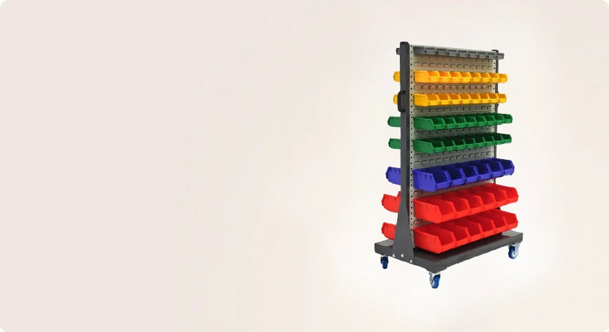 220kg Order Picking Trolley + 52L Red Plastic Crate