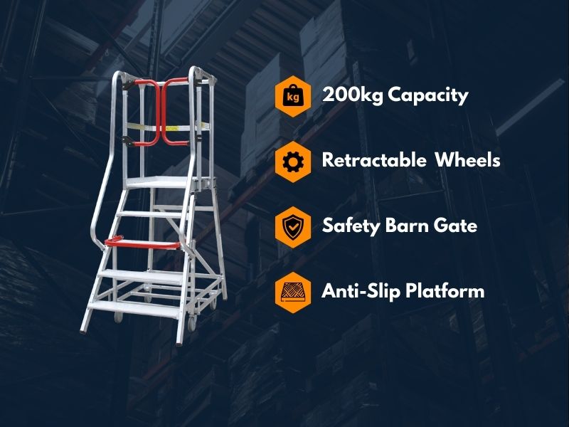 200kg Rated Monstar Pro Aluminium Rolling Platform Ladder