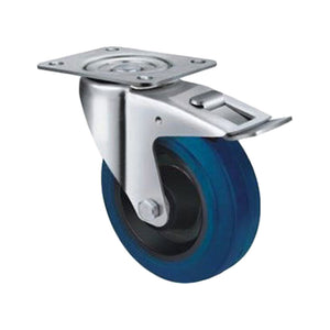 140kg Rated Blue Rubber Castor - 100mm - Swivel With Brake