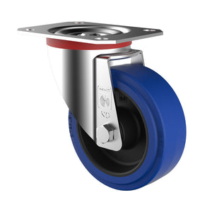 300kg Rated Blue Rubber Castor - 160mm - Swivel