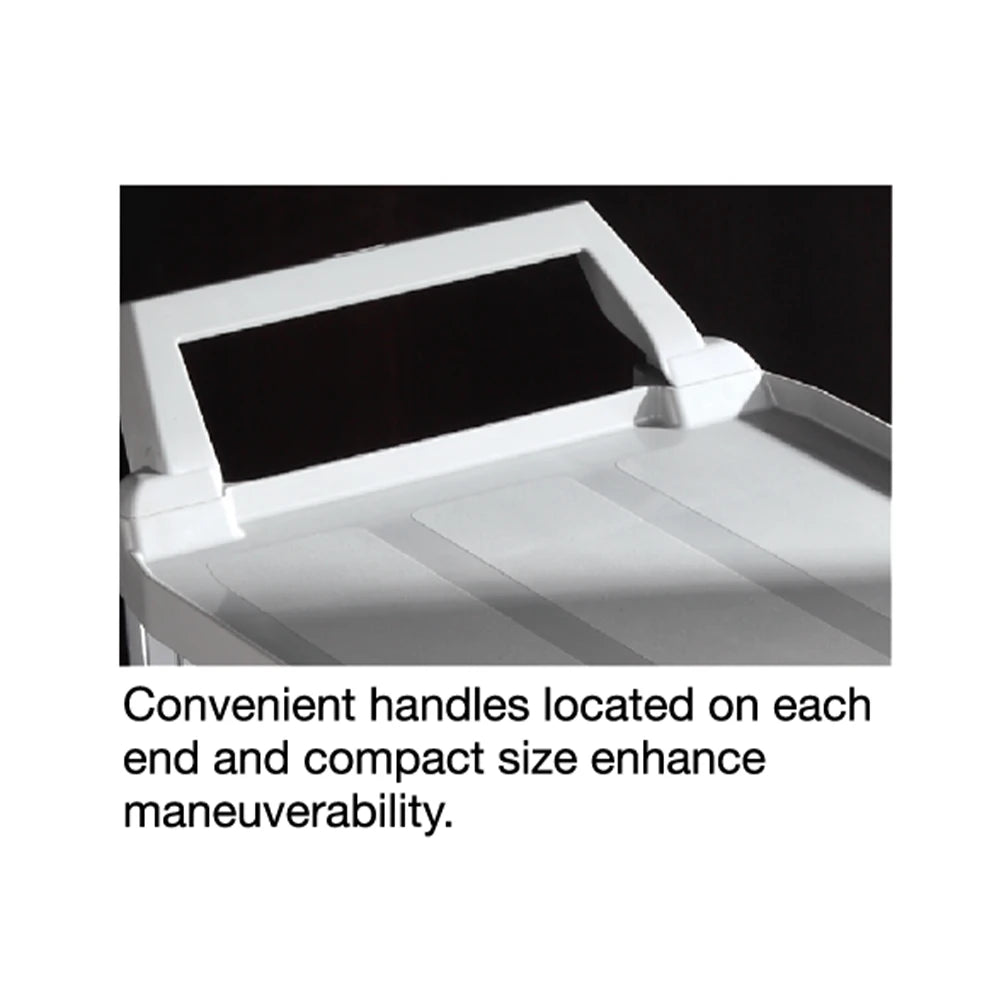 - Convenient handles located on each end enhance manoeuvrability, making it easy to push and steer in tight spaces and around corners.
