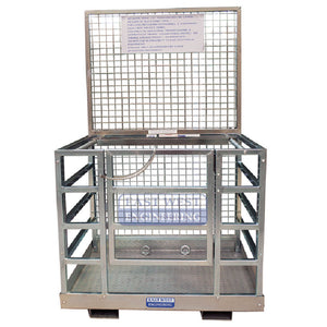 - Supplied with fork locking pins to safely secure cage to forklift, ensuring the cage remains firmly in place while in use, preventing accidental movement or detachment.