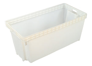 - The 118L Plastic Crate Stack and Nest Container is designed for efficient storage and organization of larger items.
