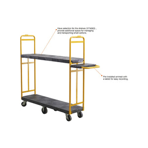- Offers an option for an extra shelf level, providing additional space for managing and transporting small cartons.