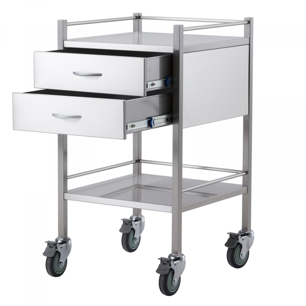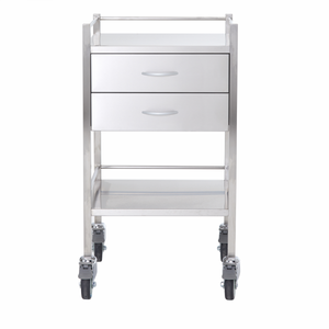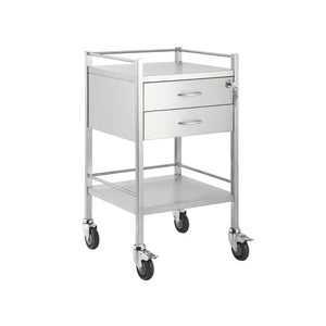 Stainless Steel Medical Trolley Utility Cart - Square with 2 Drawers