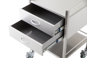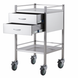 Stainless Steel Medical Trolley Utility Cart - Square with Rails with 2 Drawers