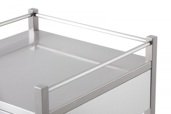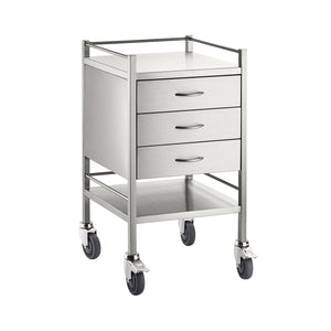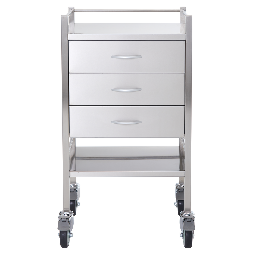 Stainless Steel Medical Trolley Utility Cart - Square with Rails with 3 Drawers