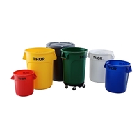 - The 121L Thor Round Plastic Bin is designed for large-scale waste management and versatile storage, perfect for both commercial and residential environments.