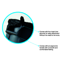 - Four trash liner grooves allow for quick and easy attachment of liners, eliminating the need for tying knots and improving efficiency.