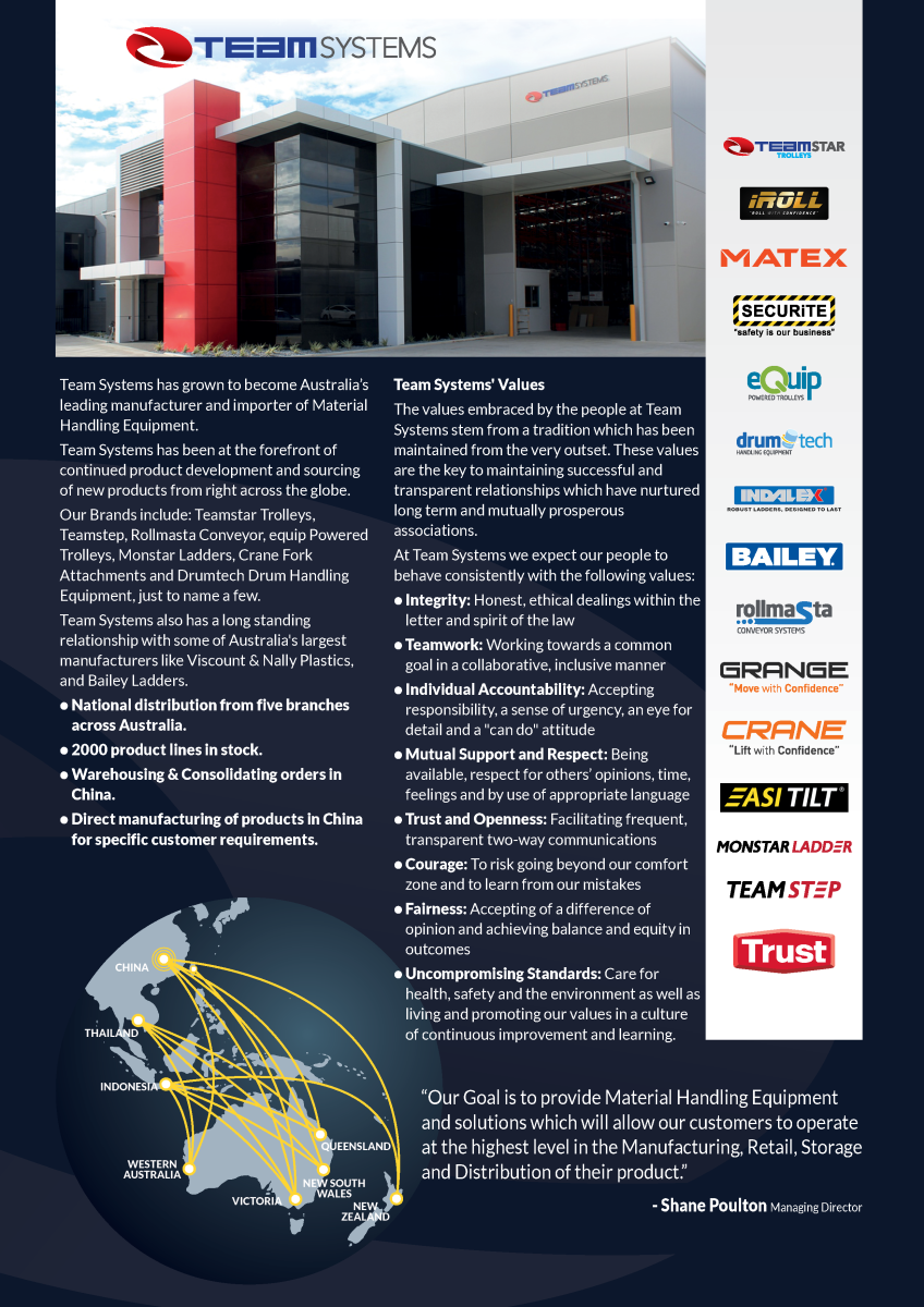 Team Systems- Trolleys, Ladders, Plastic Crates, Castor Wheels, Material Handling